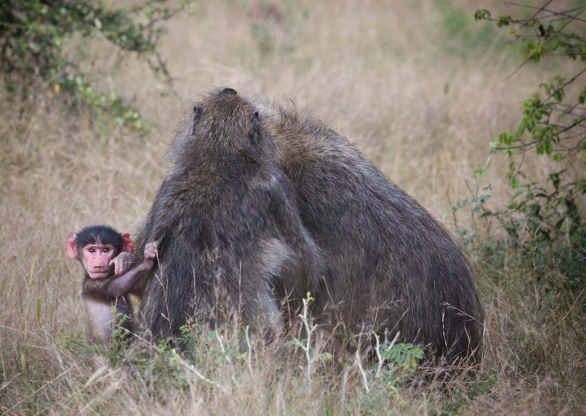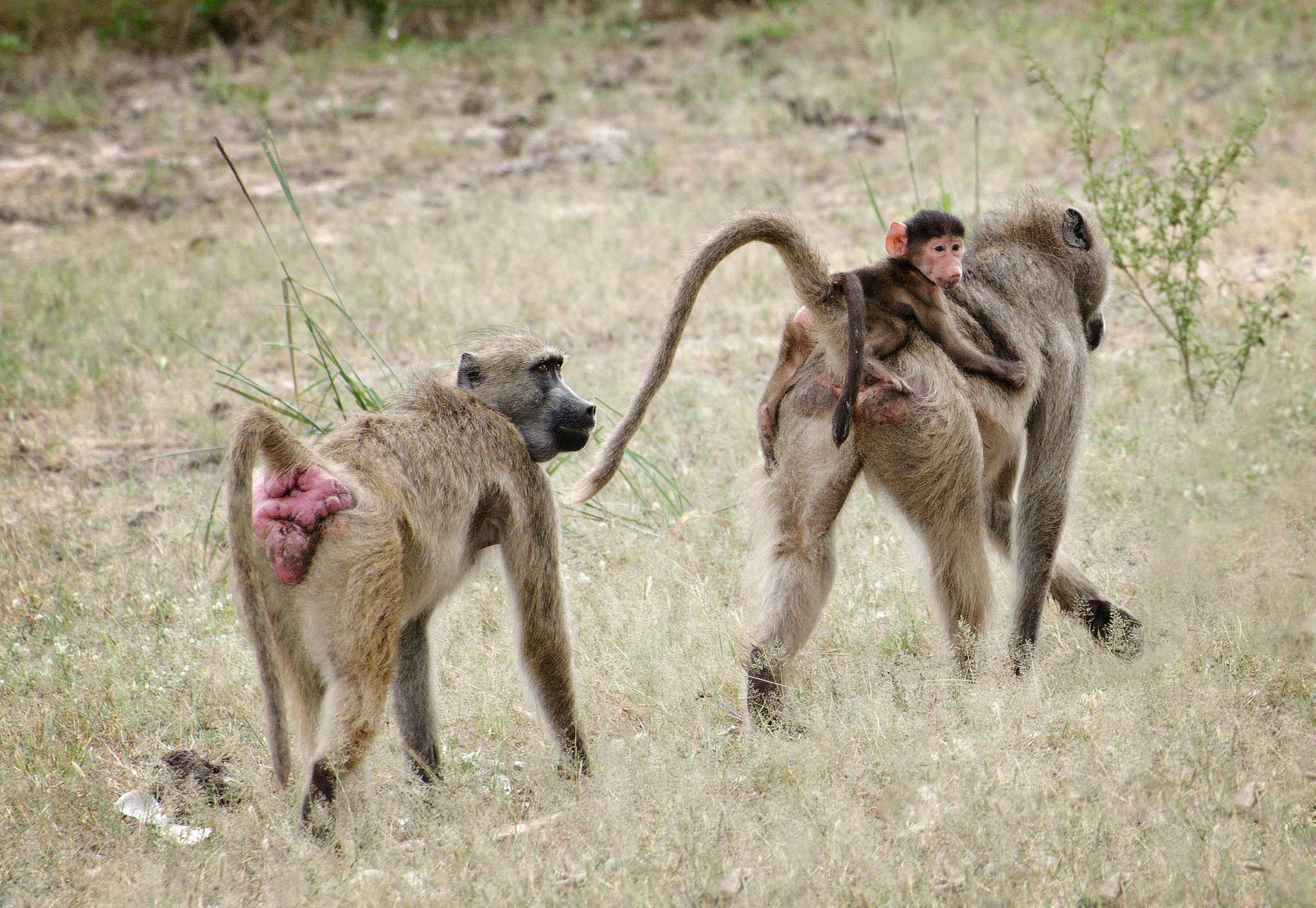 Baboon with juvenile on the march