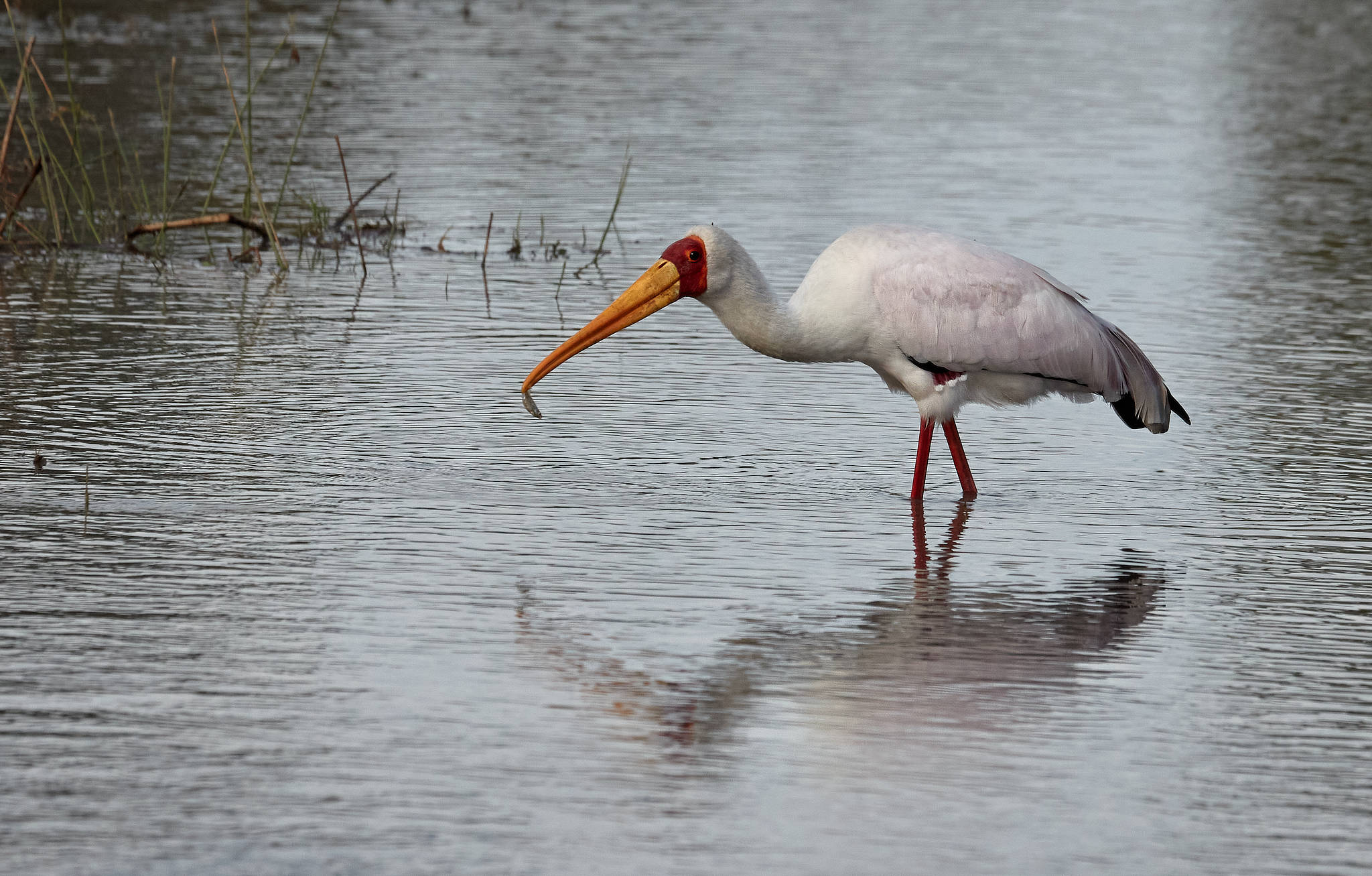 Fish with Yellow-billed Stork